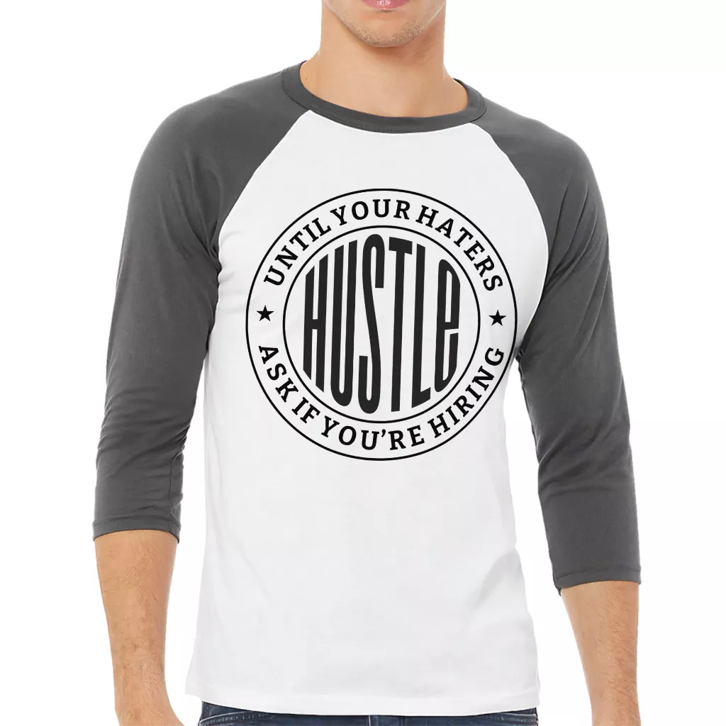 Hustle Until Your Haters Ask If You’re Hiring Baseball T-Shirt – Funny 3/4 Sleeve – Hustle and Grind Raglan Jersey Shirt