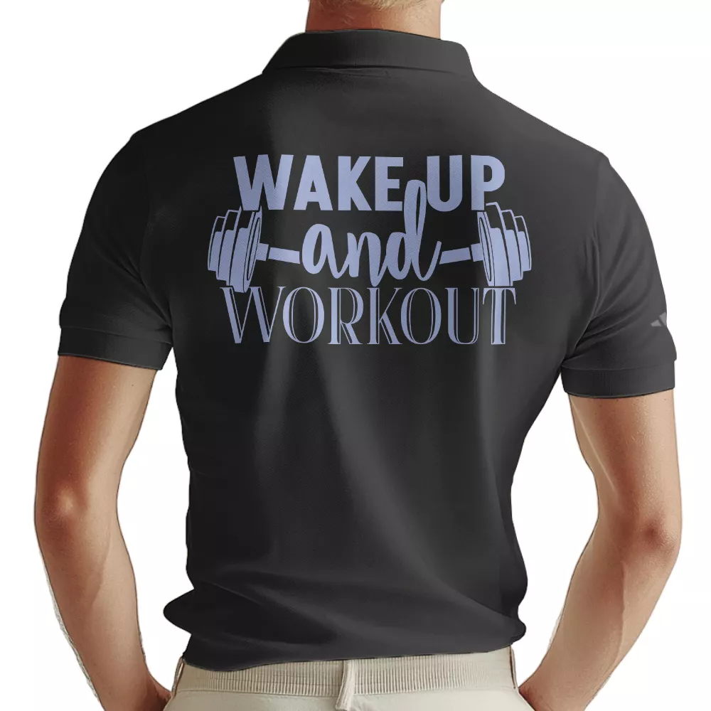 Wake Up and Workout adidas Polo Shirt – Fitness Short Sleeve Tactical Shirts – Personal Trainer Lightweight Golf Shirts