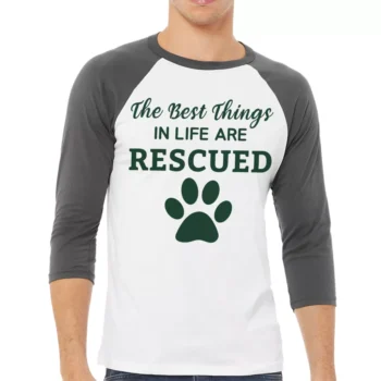 The Best Things in Life Are Rescued Baseball T-Shirt – Rescue Dog 3/4 Sleeve – Paw Print Raglan Jersey Shirt