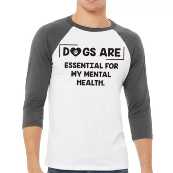 Dogs Are Essential For My Mental Health Baseball T-Shirt – Dog Lover 3/4 Sleeve – Cute Puppy Raglan Jersey Shirt