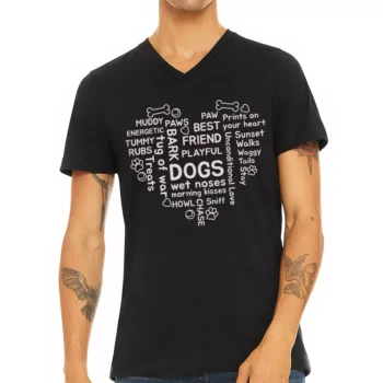 Dogs Words in Heart V-Neck T-Shirt – Dog Owner Basic T-Shirt – Gift for Dog Parent Tee
