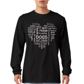 Dogs Words in Heart Long Sleeve T-Shirt – Dog Owner T-Shirt – Gift for Dog Parent Basic Tee