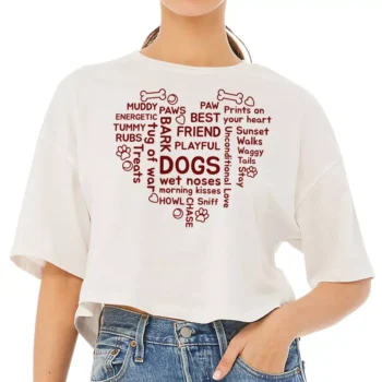 Dogs Words in Heart Cropped T-Shirt – Dog Owner Trendy Tee – Gift for Dog Parent Women’s Basic T-Shirt