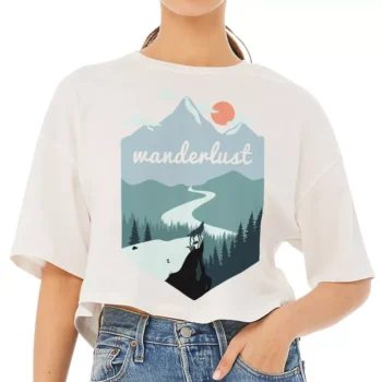 Wanderlust Cropped T-Shirt – Mountains Trendy Tee – Outdoorsy Women’s Basic T-Shirt