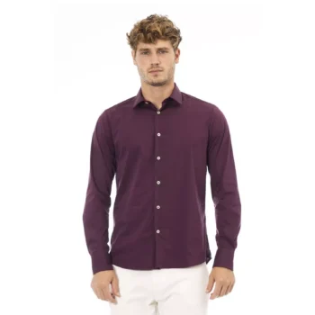 Baldinini Trend Men’s Slim Fit Bordeaux Shirt with Italian Collar