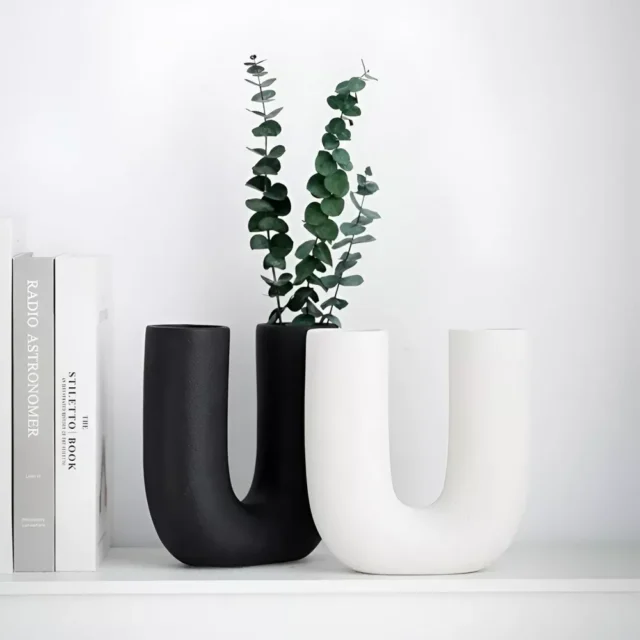 This vase is designed with simplicity and functionality in mind. Made from high-quality ceramic, it features a smooth matte finish that feels refined yet understated. Sized for tabletops, it provides a balanced presence without overwhelming your décor. The unique U shape allows for creative floral arrangements, giving your space a stylish, curated look.