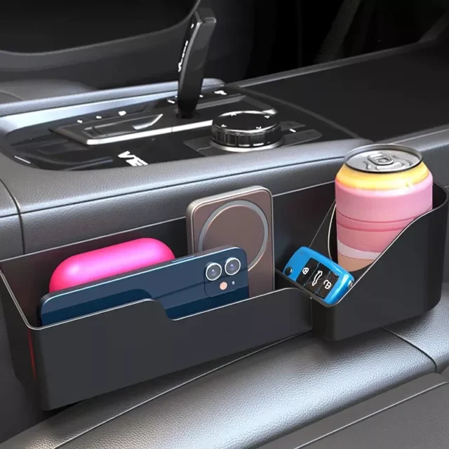 • Multifunctional Design: Combines a cup holder, storage box, and side organizer in one.