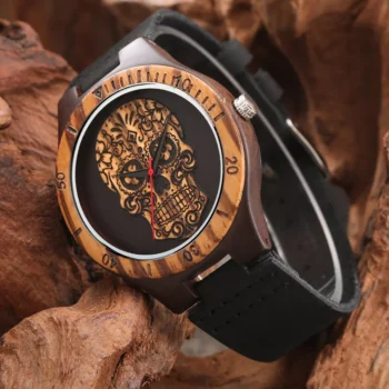 Punk Vintage Ebony Wood Watch – Unique Quartz Wristwatch for Men