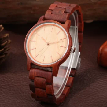 Elegant Full Wood Quartz Men’s Wristwatch with Rose Gold Accents