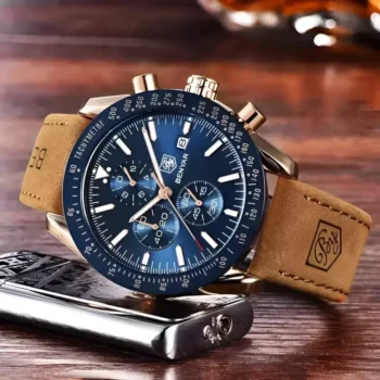 Men’s Luxury Leather Quartz Watch – Sports Waterproof, Business Watch with Box