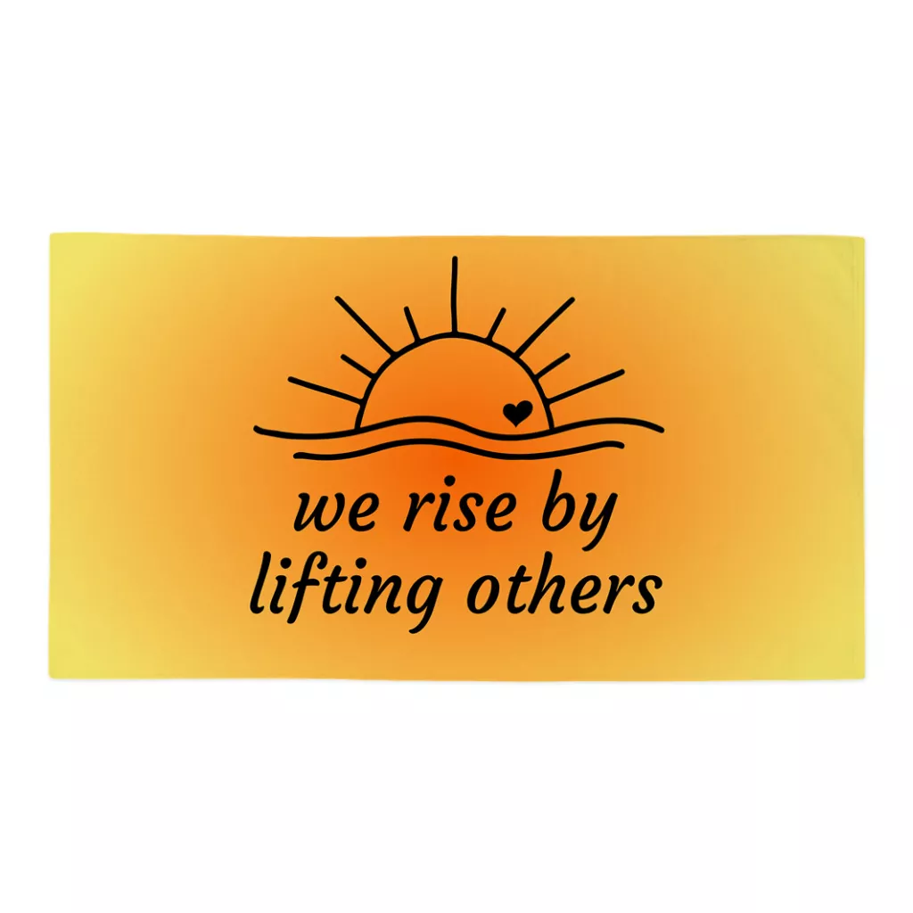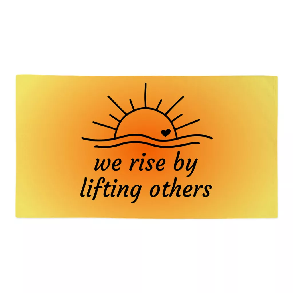 We Rise By Lifting Others Bath Spa Towel – Positive Motivational Polycotton Towel – Sun Graphic Gift Towel