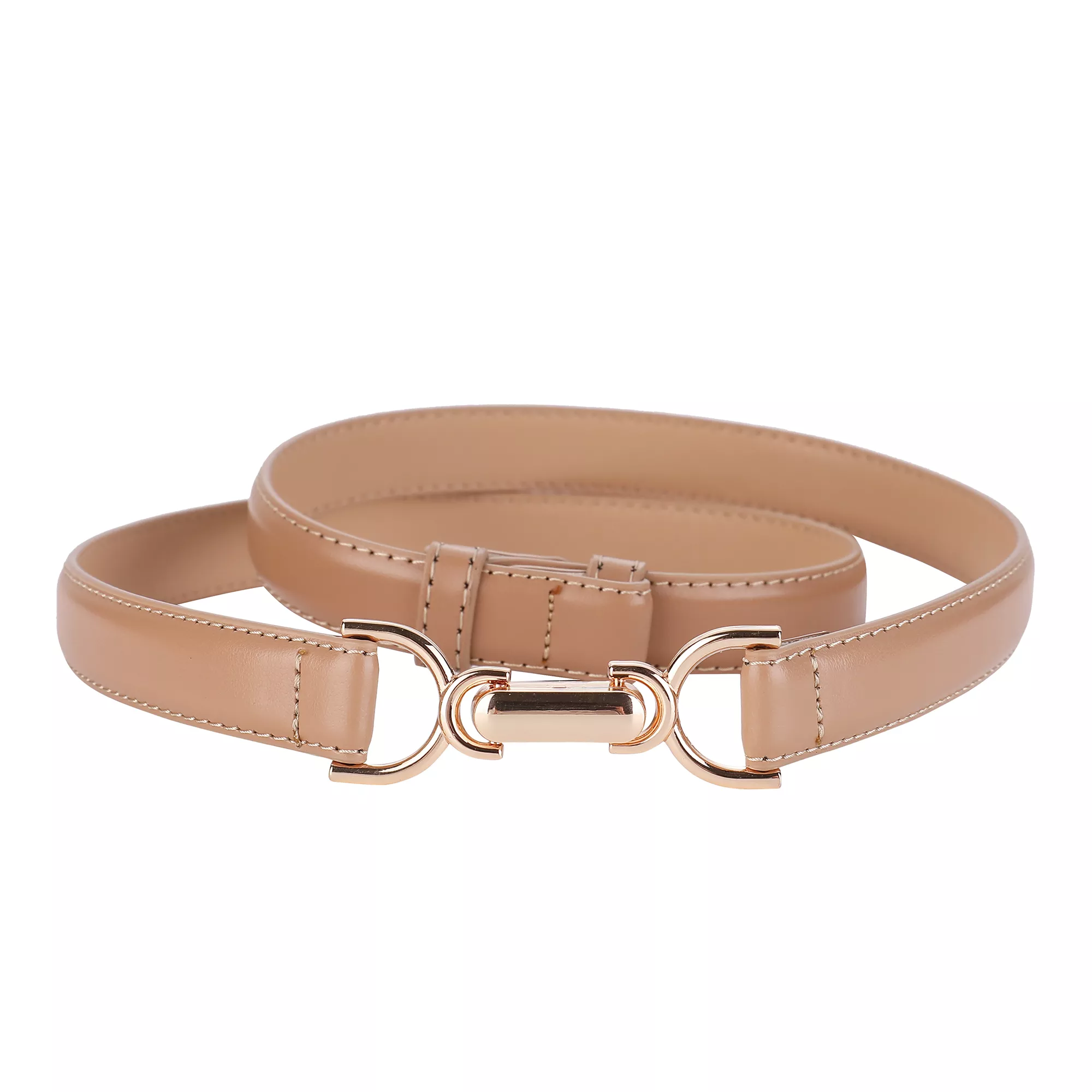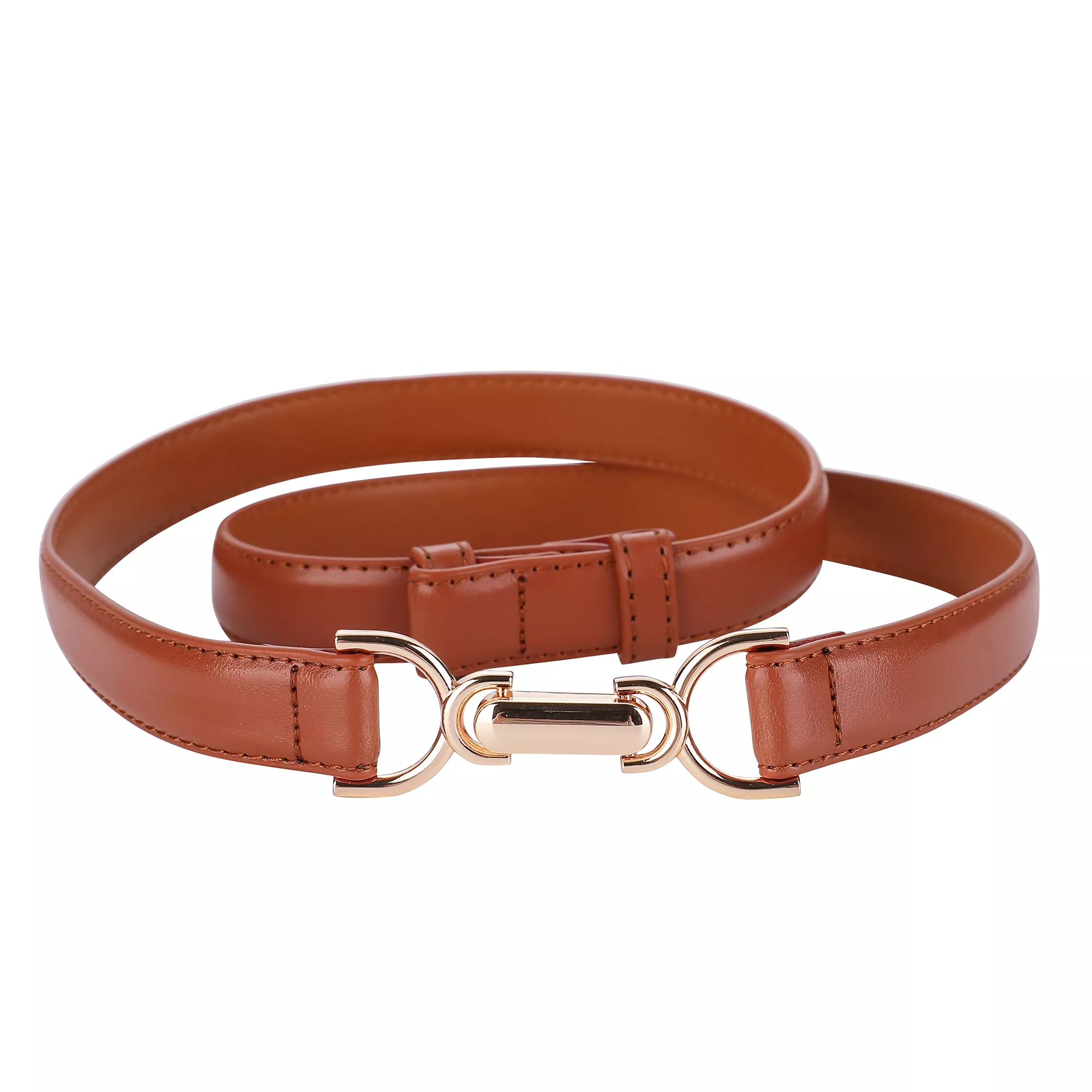 This women’s skinny leather belt stands out because of its combination of quality craftsmanship and fashion-forward design. The gold buckle adds a subtle luxury to any outfit, while the adjustable fit ensures that it will comfortably hug your waist all day long. No matter your body shape or size, this belt works to cinch your waist and give you that flattering hourglass shape. Plus, the genuine leather material means that this belt not only looks great but is also built to last.