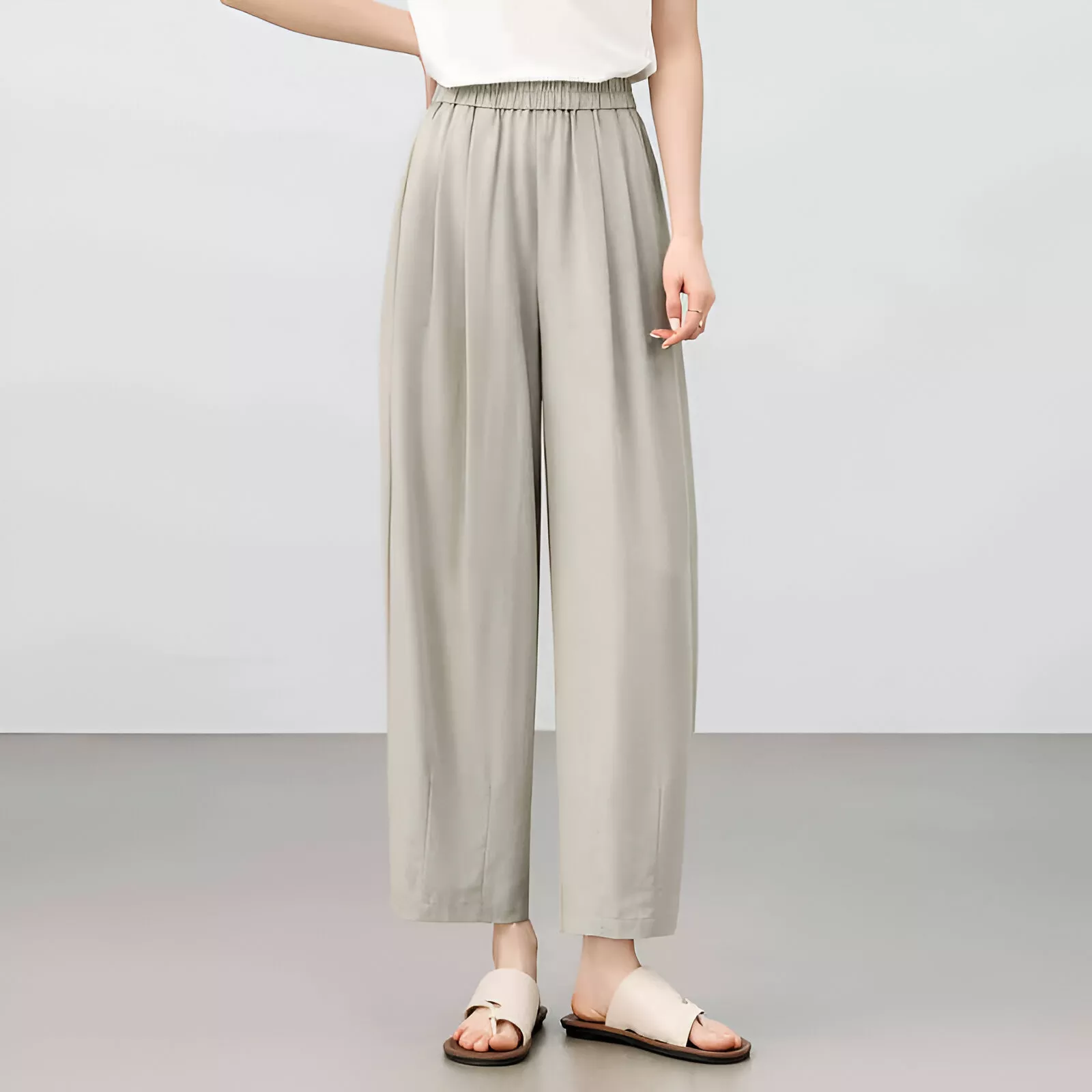 Women’s Wide-Leg Lyocell Ankle Pants – High Waist, Spring/Summer Office Look